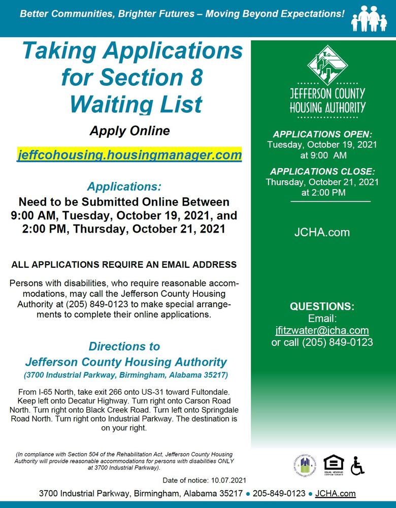 Oct 19 At 9am Section 8 Hcv Accepting Online Applications 10 18 2021 News Jefferson County Housing Authority Jefferson County Al